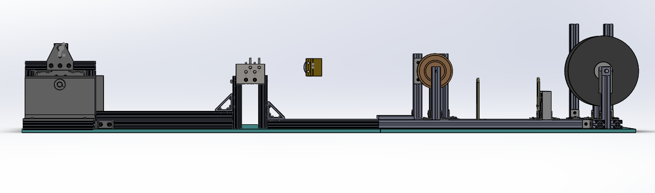 Several aspects of the system were redesigned from the initial prototype. First, the drive wheel, which pulls the fiber through the system needed to be automated. We chose a 24V DC stepper motor for its cheap cost and high accuracy in speed control. The stepper motor was controlled using an arduino UNO and the code was written in the arduino IDE. In order to keep the fiber under tension while it was pulled through the system, a tensioning mechanism was placed near the spool of fiber. The original tensioning system was not adjustable, so a new one was designed and built. The new tensioner resembles a disc brake attached to the fiber spool, which applies tension to the fiber as the spool turns. The plates of the tensioning system were CNC cut from aluminum and the frame of the spool was made from aluminum 80/20.